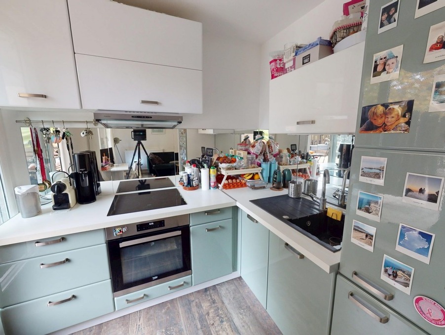 Un accès privatif et individuel se fait par la terrasse, puis par de grandes baies vitrées lumineuses donnant sur la cuisine et le séjour. Cet espace cuisine est aménagé et équipé, il donne sur le séjour parqueté. Après un dégagement, vous découvrirez une jolie salle d'eau récente meublée, avec wc, et important : un espace nuit clos. pour le confort, il a été créer un grand espace buanderie et dressing clos.