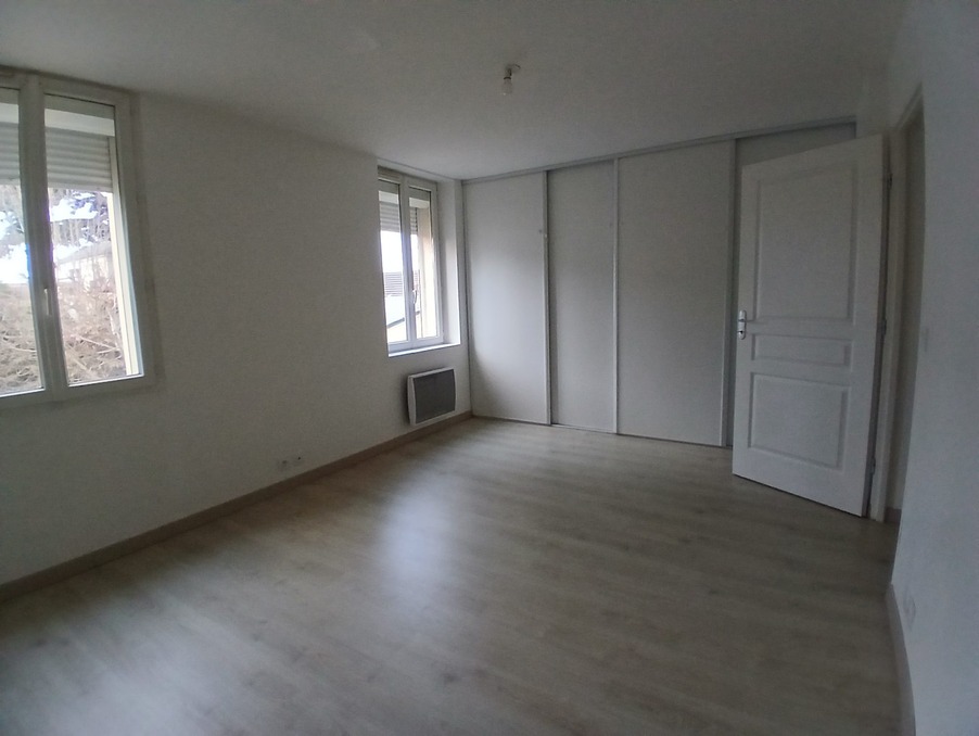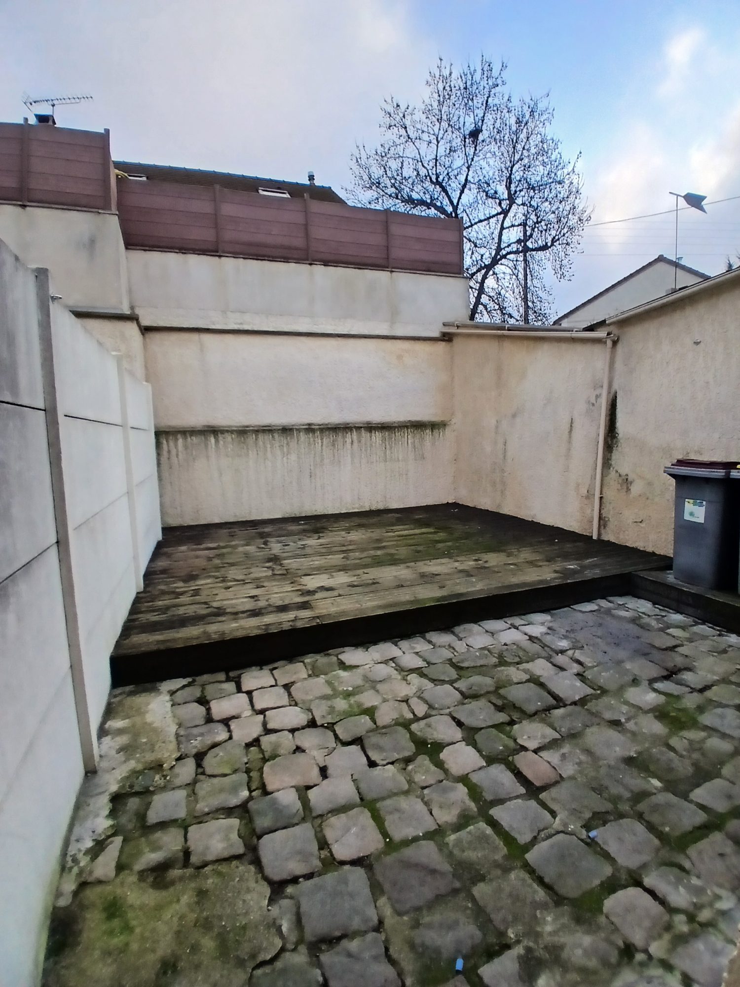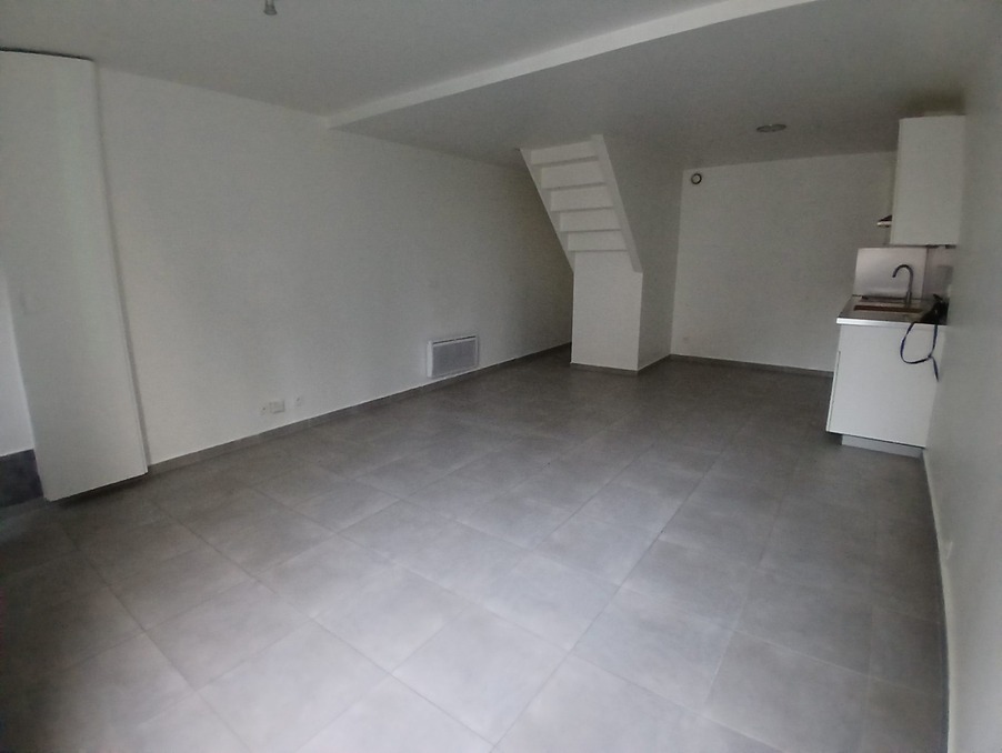 Maison 4 pièces, mitoyenne d'un côté comprenant : séjour avec cuisine ouvert, une salle de bains, un chambre. A l'étage, deux chambres. Une courette à l'arrière de la maison.