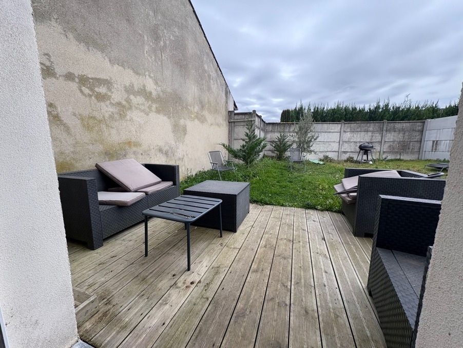 Maison de type 3 pièces de 64.81m2, mitoyenne d'un côté, rénovée en 2020 comprenant : une entrée, une cuisine meublée, wc, un coin buanderie et un séjour avec accès direct à la terrasse et jardinet. A l'étage, deux chambres, une salle d'eau, wc et un dressing.