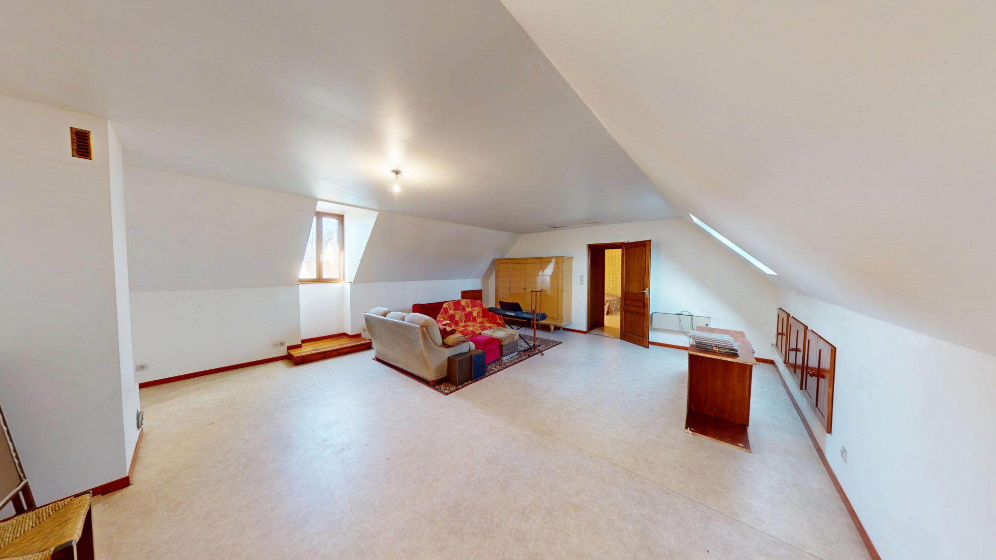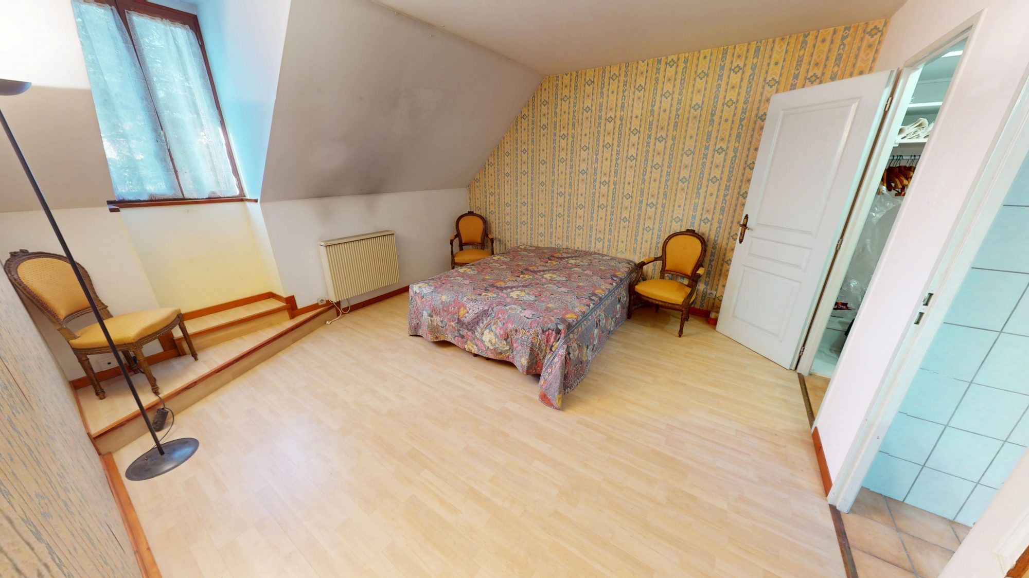 À l'étage, vous trouverez une suite parentale avec salle d'eau et dressing, ainsi qu'une grande pièce pouvant être facilement transformée en une ou deux chambres, selon vos besoins.