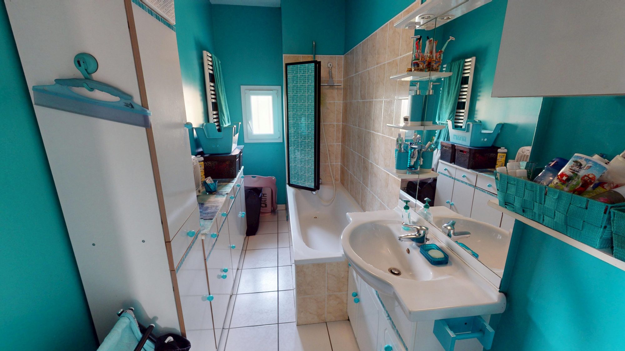 Enfin, une allée centrale permettant à un véhicule de se garer, avec portail motorisé.