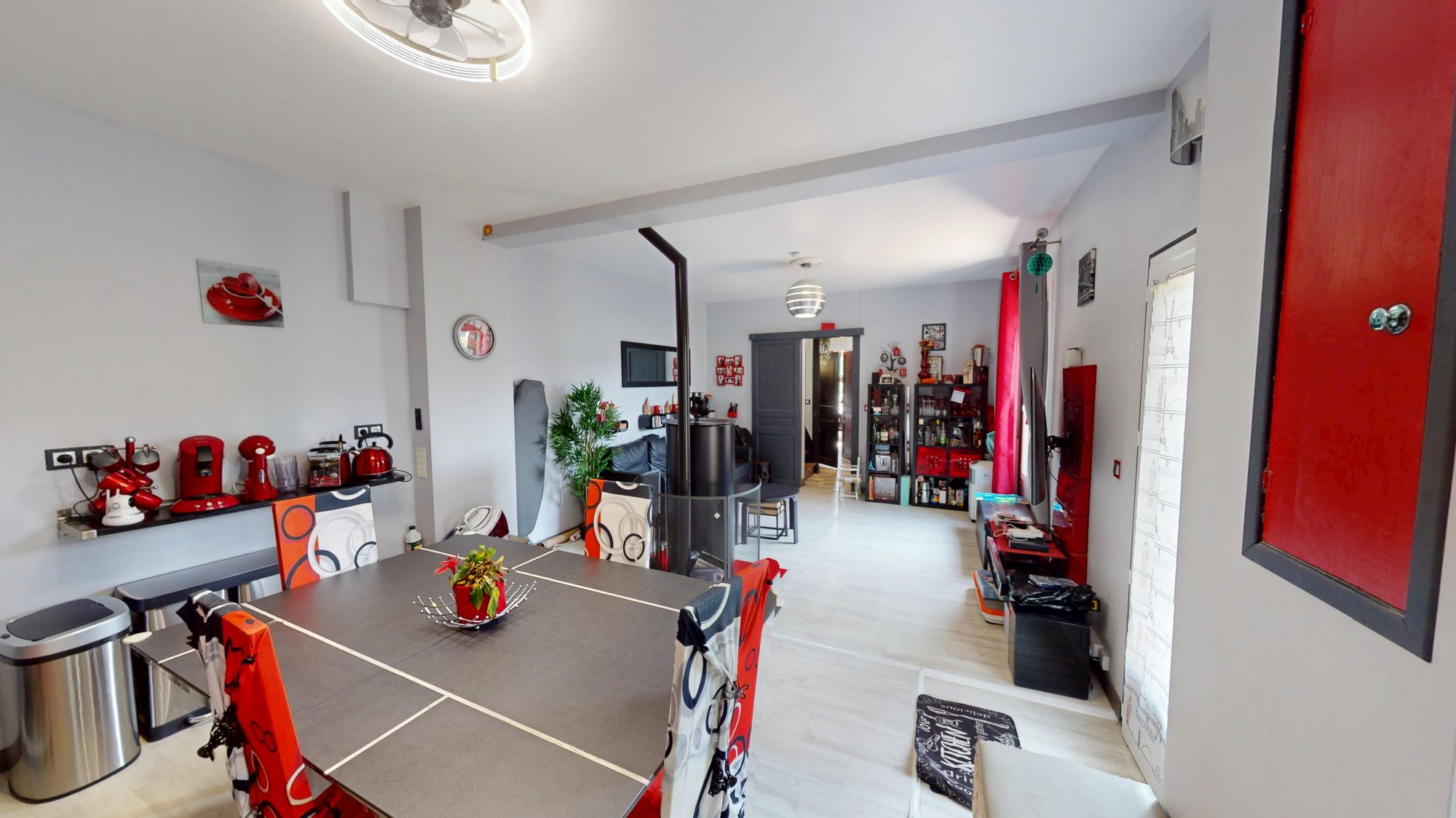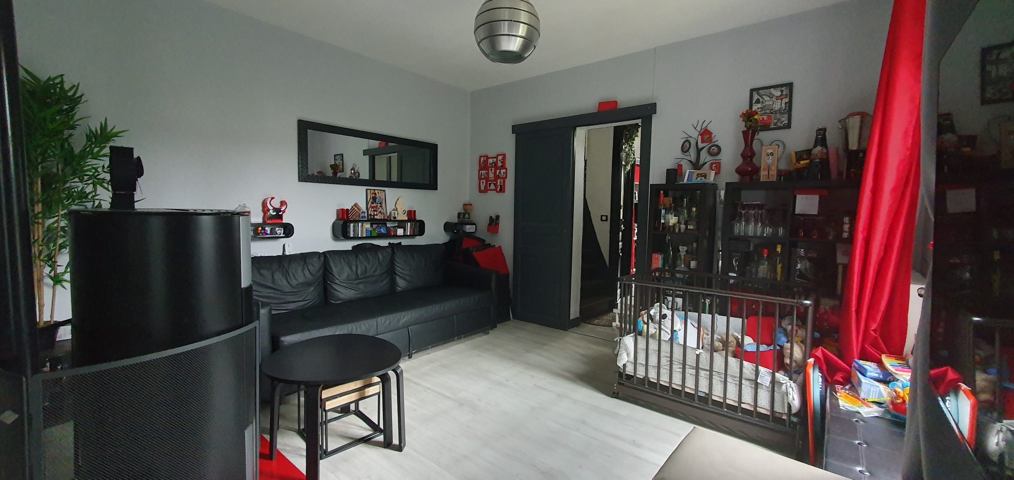 Elle se compose, au rez-de-chaussée, d'une entrée menant à un beau séjour lumineux possédant un poêle a granulé, ouvert sur une cuisine aménagée et équipée, une chambre ainsi que d'un WC.