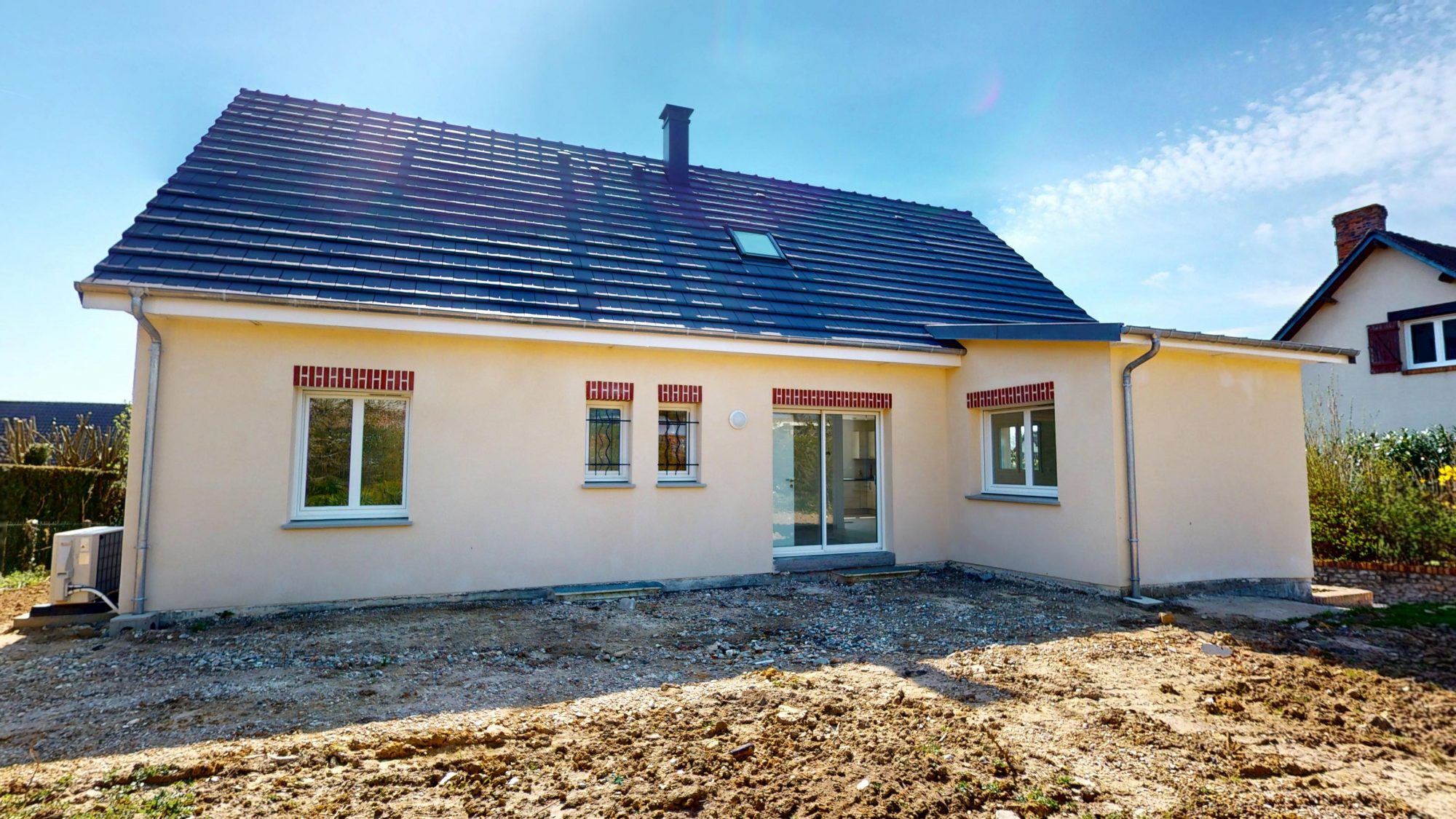 Elle se compose de 94m2 de en rez-de-chaussée comprenant une entrée avec rangement, une cuisine ouverte, un séjour double, une salle d'eau, un wc et 3 chambres.