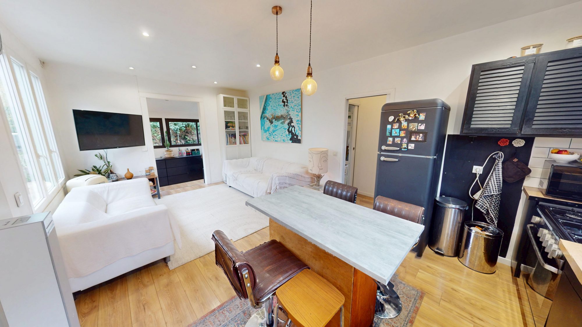 Au cœur de cette maison, un séjour spacieux de 22 m² baigné de lumière vous accueille. Imaginez-vous profiter des doux rayons du soleil grâce à son exposition sud-ouest, créant une atmosphère chaleureuse et accueillante. Elle comprend entrée sur séjour avec cuisine ouverte tout équipée, véranda, coin bureau, 2 chambres et une salle d'eau avec wc. Au rez-de-jardin, une buanderie avec une pièce de stockage et une chambre. De plus, cette maison offre la possibilité de garer 2 véhicules.