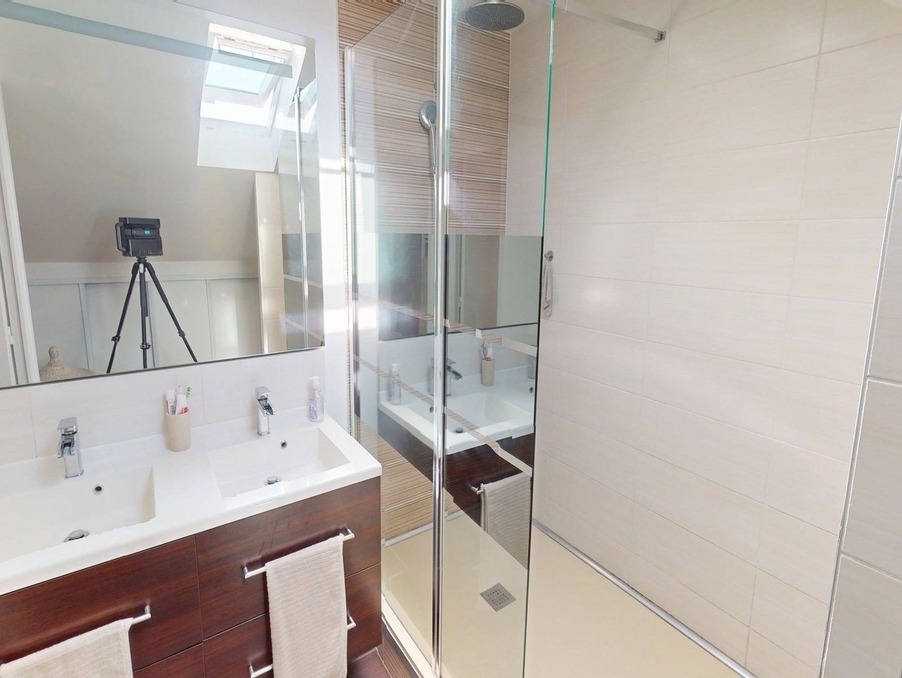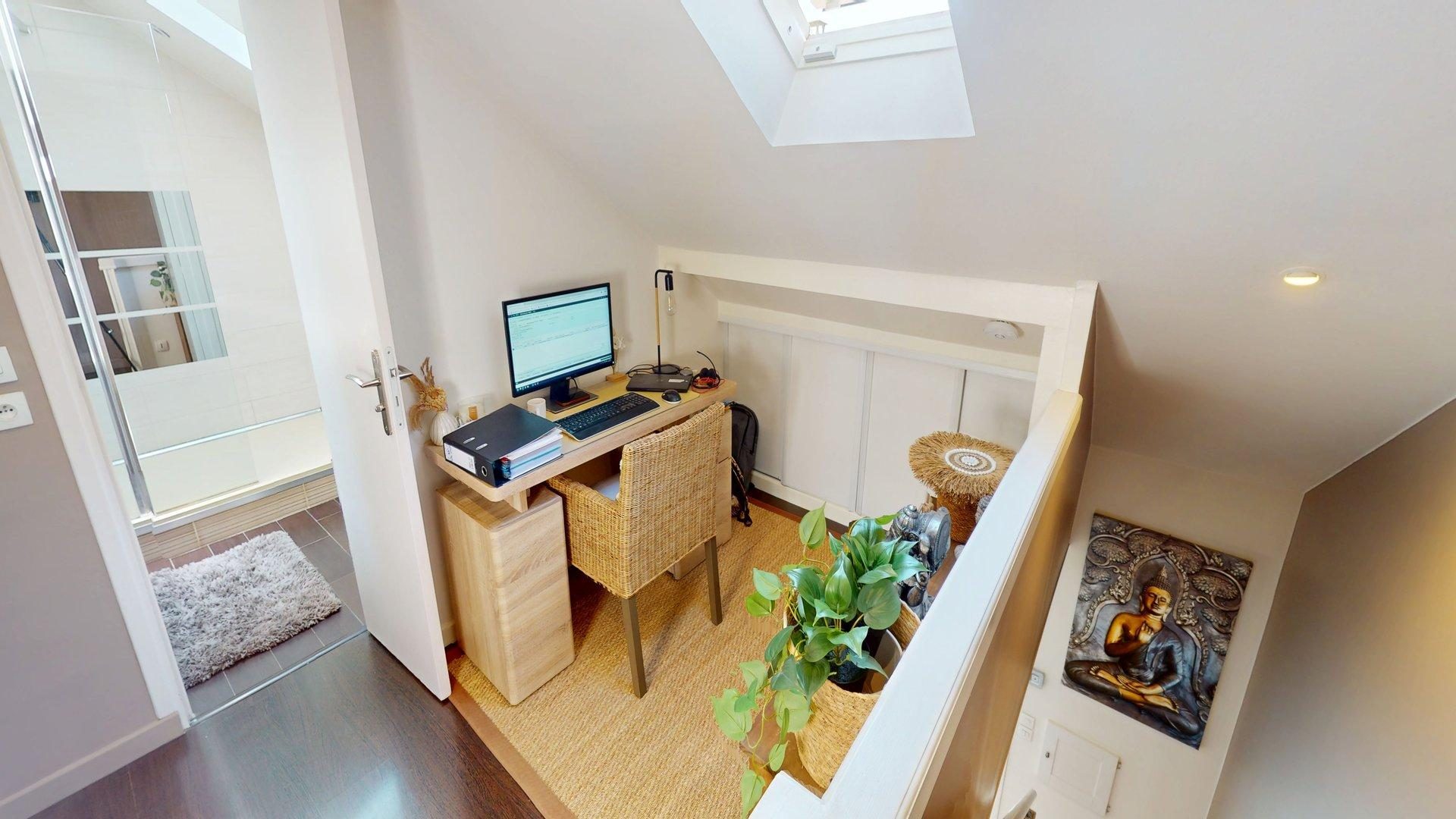 Si vous recherchez une maison 'coup de cœur', avec 2 chambres et un espace bureau, avec aussi un séjour-salon de 31m² + véranda et jardin, et à 3 pas de la gare... La voici !!!! Cette maison se situe dans un hameau piétonnier fermé et sécurisé, elle offre une entrée, avec rangements, ouverte sur un salon avec son poêle à bois, la salle à manger ouverte sur une jolie cuisine équipée de 9m², et une véranda chauffée dans le prolongement, accessible par une baie vitrée coulissante à galandage. Terrasse et jardin clos. A l'étage, palier, espace bureau lumineux avec rangements, 2 chambres dont une avec un grand dressing, belle salle d'eau meublée récente avec un grand receveur sur-mesure et un wc suspendu. Toilette aussi au rdc. Double vitrage, électricité rénovée, ravalement récent, pas de travaux à prévoir. Le Hameau est calme, il comporte 46 maisons et il est végétalisé, les habitants, les enfants du hameau s'y promènent gaiement en sécurité. Cette maison dispose aussi d'un box pour voiture à 50m au sein du hameau. La gare SNCF de Taverny est à 300m. Les commerces et différents équipements communaux, les écoles sont accessibles en moins de 5 minutes à pied. Au top !!!